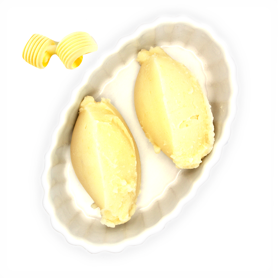 بطاطس (91%), زبدة مركزة (4%), مسحوق الحليب كامل الدسم, ملح, مادة مصلبة E450i.
