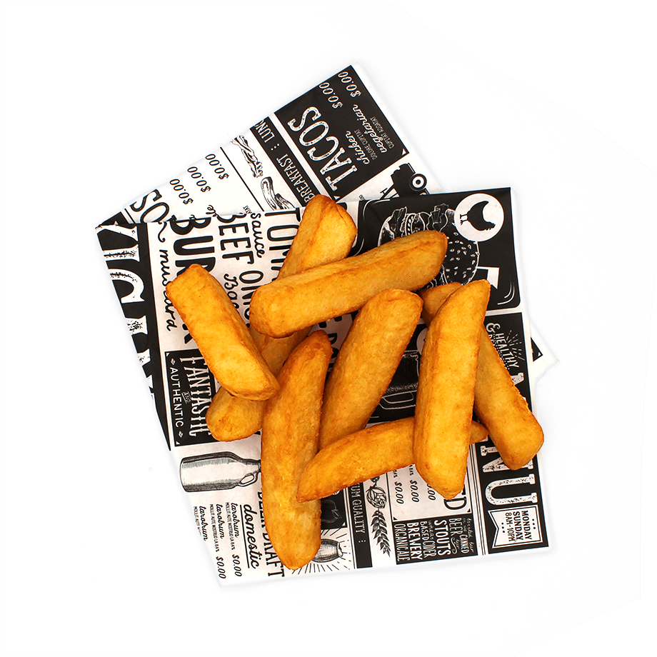 Mimo że są równie szerokie jak grube, te Pub Chips są chrupiące, ale także dłużej pozostają gorące dzięki powłoce X-tra Crispy.