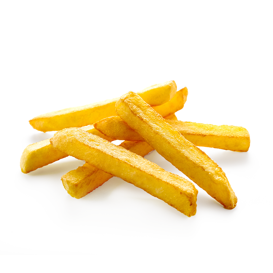L’authentique frite belge. Sa fraîcheur, sa coupe irrégulière et sa belle couleur dorée en font une véritable «frite maison»